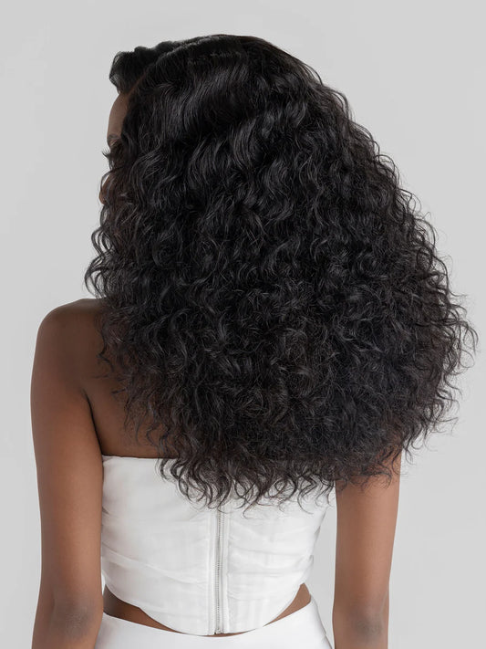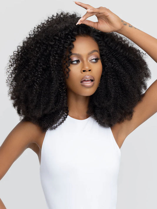 Our collection of steam-textured virgin Indian hair offering a variety of patterns for every hair type. These steamed textures were designed to match every kink and curl for the perfect blend. This model is wearing Bounce Organic Curl.